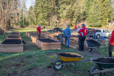 After many more workdays - with twenty beds built, three loads of woodchips spread, 25 cubic yards of soil moved, and dozens of native plants and other pollinator-attracting plants put in the ground - the garden is getting ready.